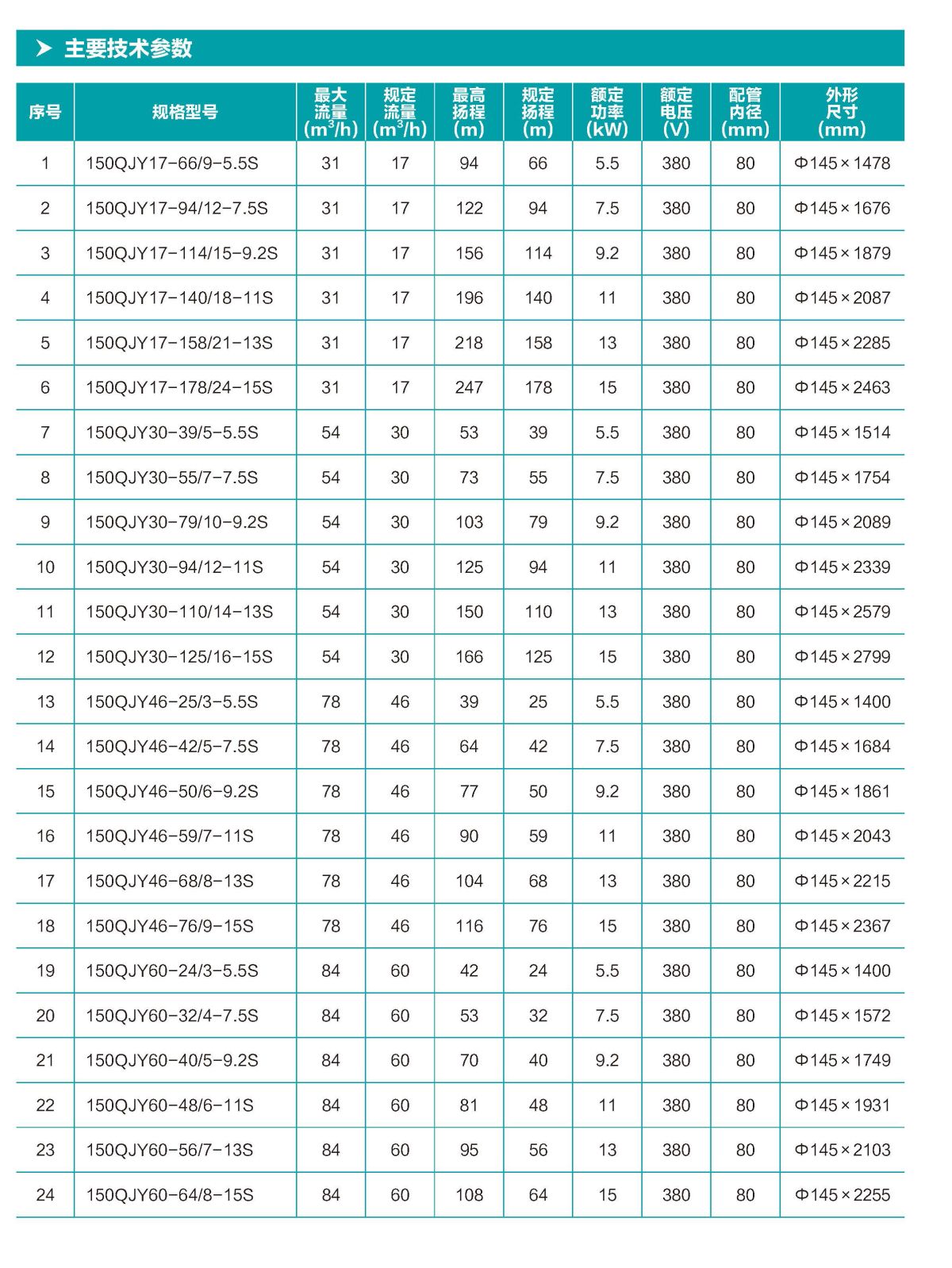 150QJY 井用多級潛水電泵,采用榮膺“品牌中國大獎·最佳科技獎”的超 強“巨能芯”核心技術,品質卓越值得信賴。整體浮動式葉輪結構,耐磨更抗砂; 采用意大利進口機械密封作動密封,固定止口密封處采用雙重“O”型耐油 橡膠密封圈作靜密封,密封更可靠。